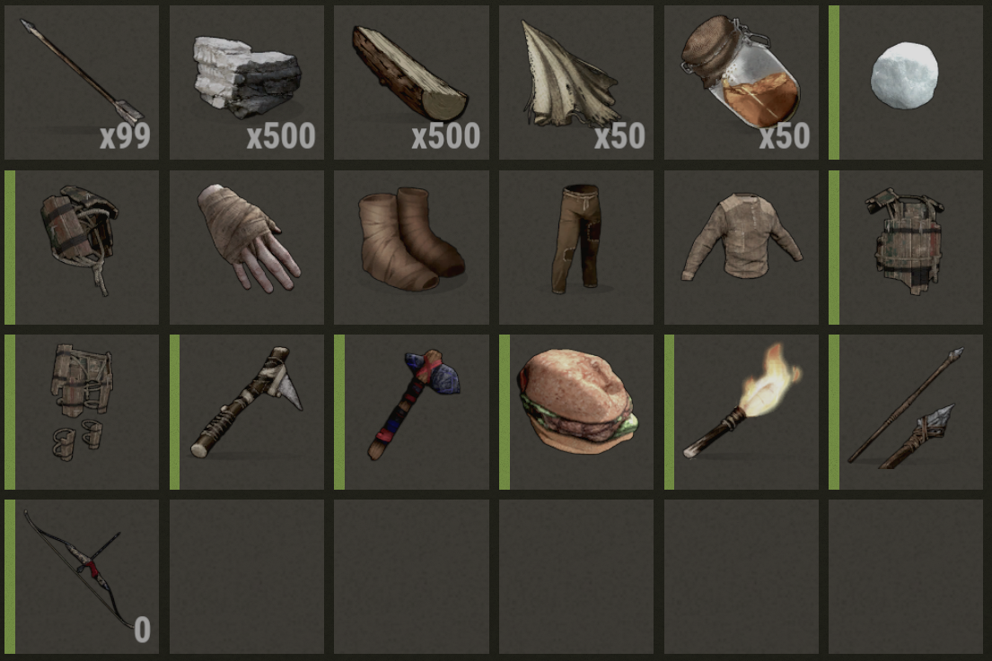 This is the default fresh spawn kit. When a player has no higher tier spawn kits available they will spawn in with these items.